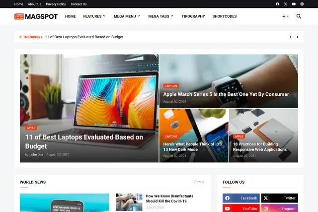 Magspot is a professional, flexible, fast and fully customizable responsive blogger or blogspot template. Magspot is perfect for news, technology, sports, viral, lifestyle, food, fashion, personal, travel and other sites. Magspot was developed with the best and most modern practices to be highly optimized for the main search engines. Magspot is also fully responsive and mobile-friendly.
